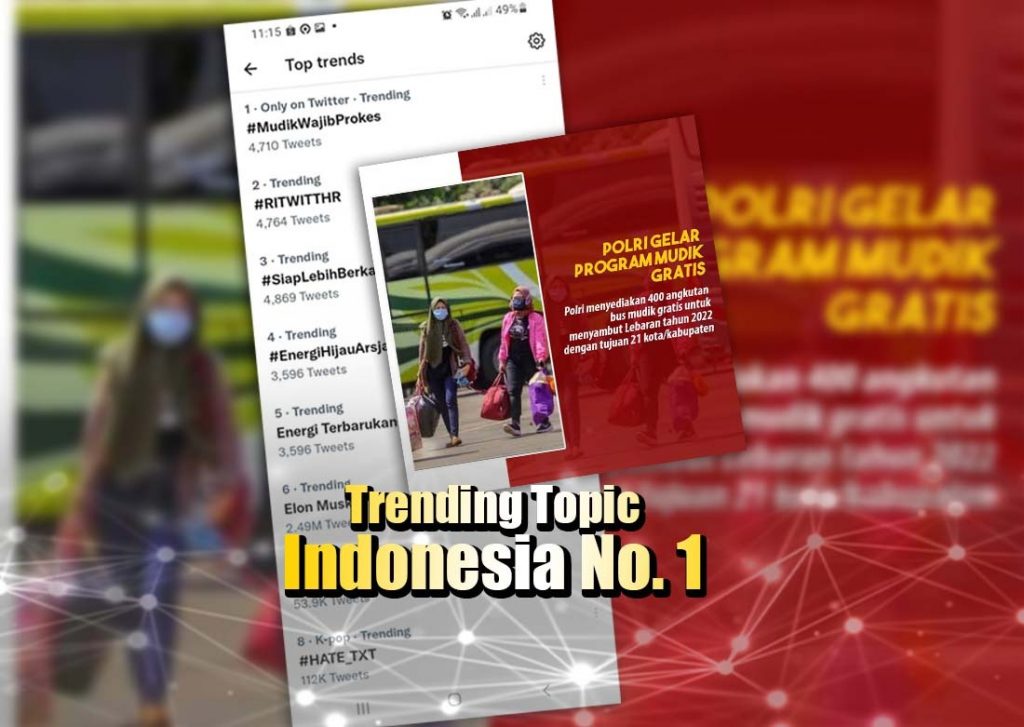 Hingga berita ini dibuat, sudah banyak cuitan diunggah dengan menggunakan tagar #MudikWajibProkes dan menjadi trending topic twitter No. 1.